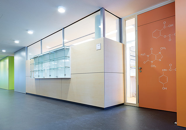 The gymnasium Grünwald in Upper Bavaria consists of 34 general classrooms, 10 music, drawing, crafts and sewing areas, as well as a photo lab