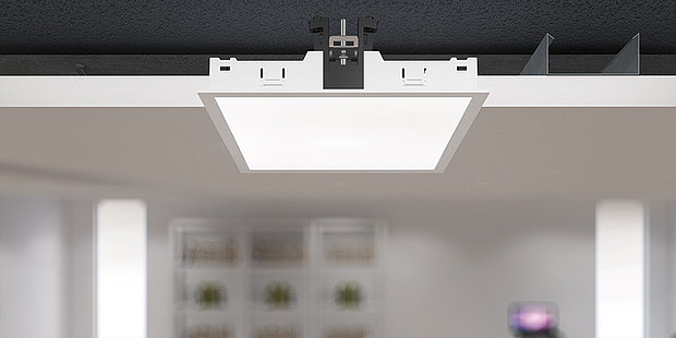 Klimakanäle, Sprinklerrohre oder Unterzüge limitieren häufig die Einbautiefe in abgehängten Decken. In diesen Einsatzbereichen sind die Spezialisten der Produktfamilie ALPHABET ZONO mit nur 49 mm EINBAUTIEFE der optimale Problemlöser.