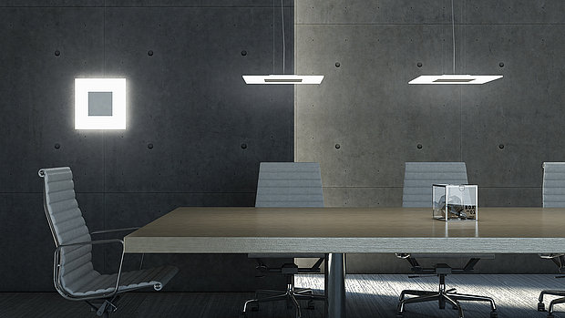 Als Wand-, Decken- und Pendelleuchte wird CALVIA zum eigenständigen Gestaltungselement im Objektbereich.