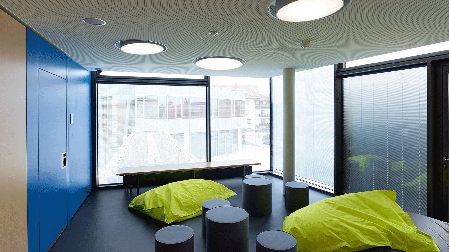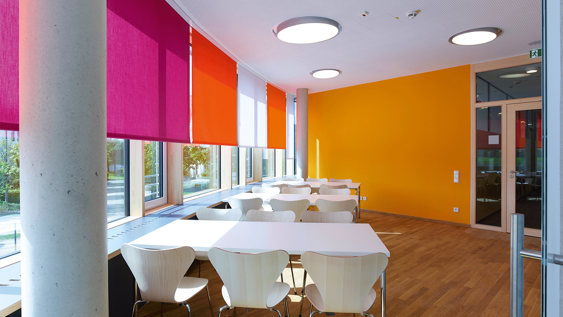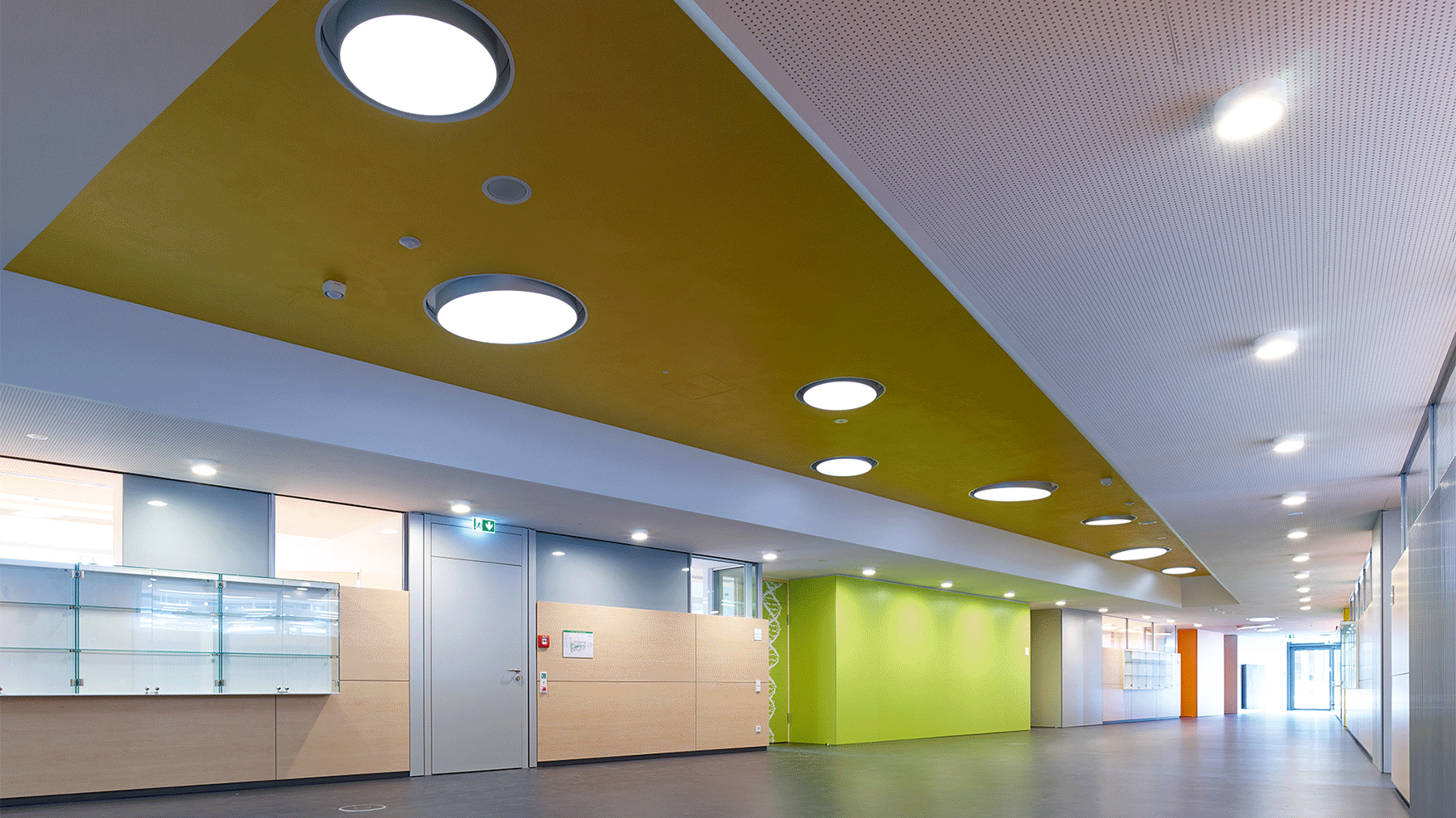 Gymnasium Grünwald, München | Planung: Lichttechnik & Design Hubert Saegmüller, Starnberg | Architektur: BKS Bauer, Kurz, Stockburger & Partner, München | Elektroplanung: IB Knab, München | Fotografie: Eberhard Franke, München