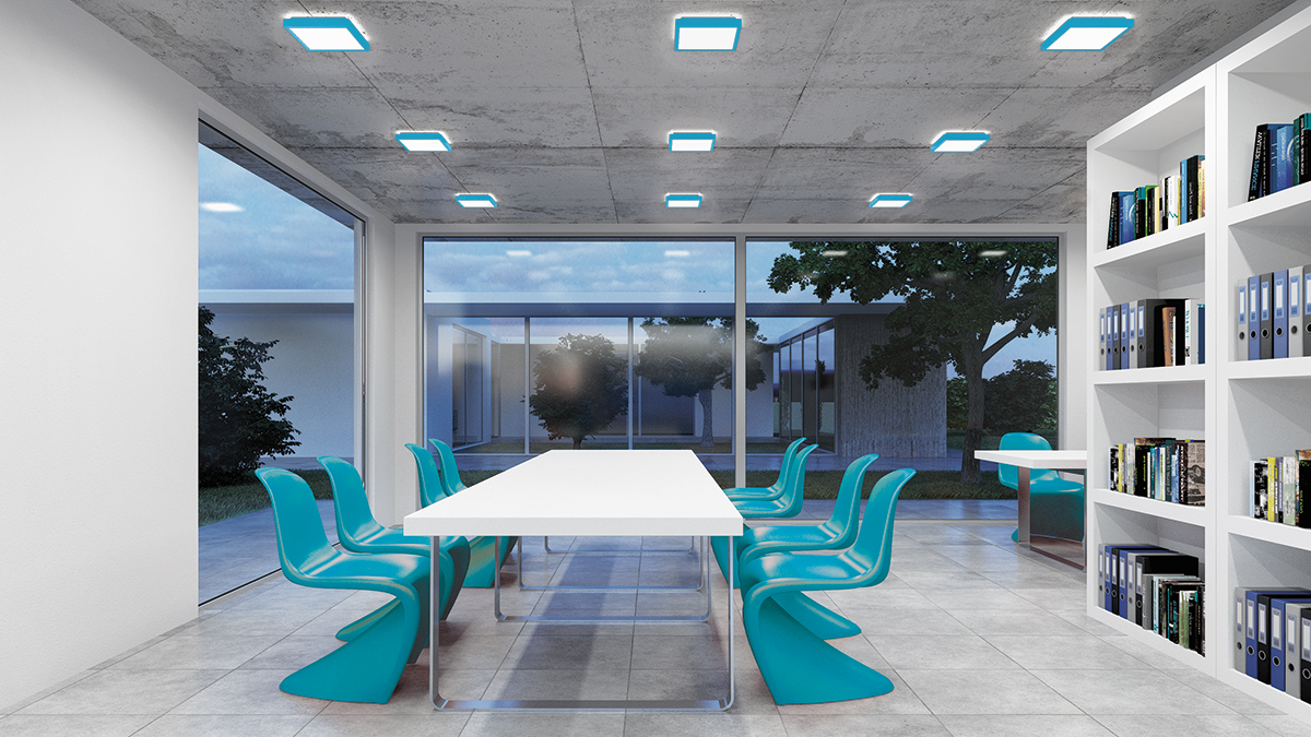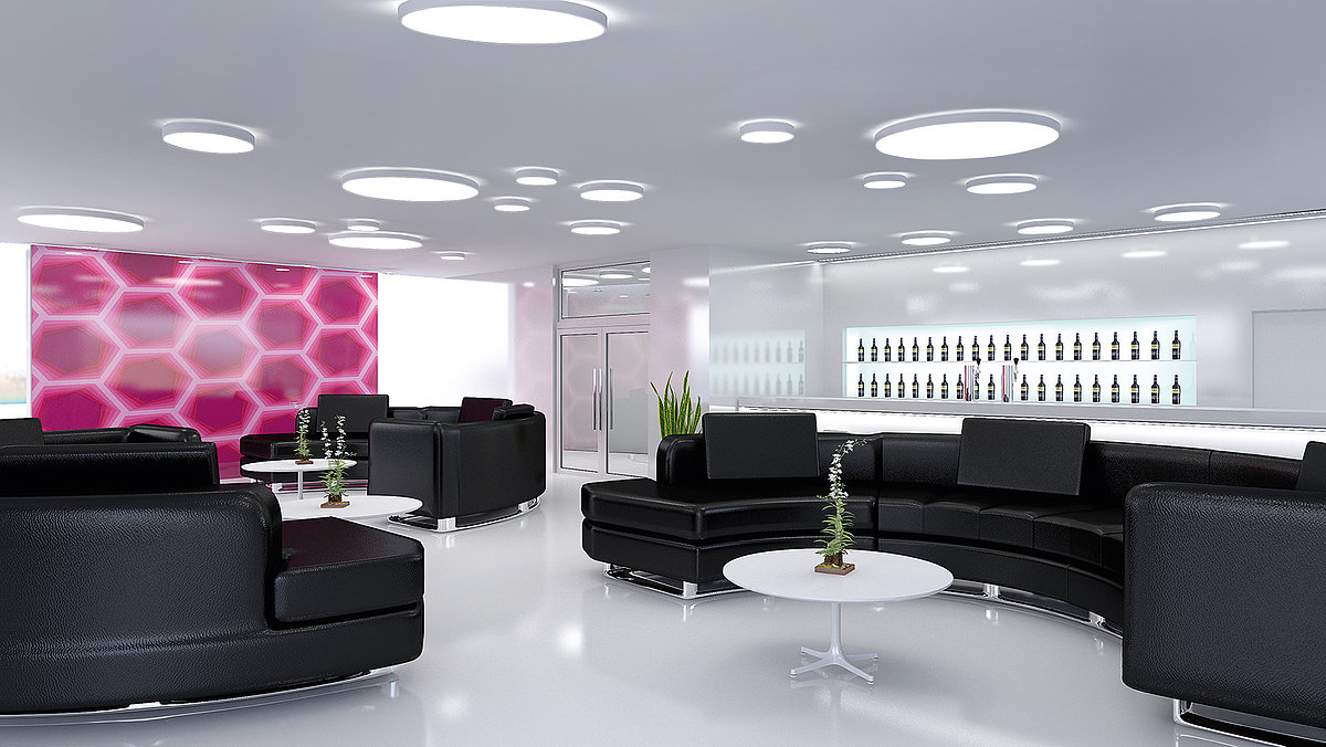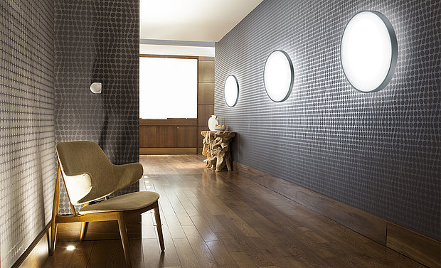 An Decken und Wänden montiert, sorgt CLEAR FLAT in Fluren, Wartebereichen und ähnlichen Räumlichkeiten für die gewünschte Atmosphäre.