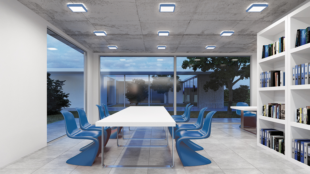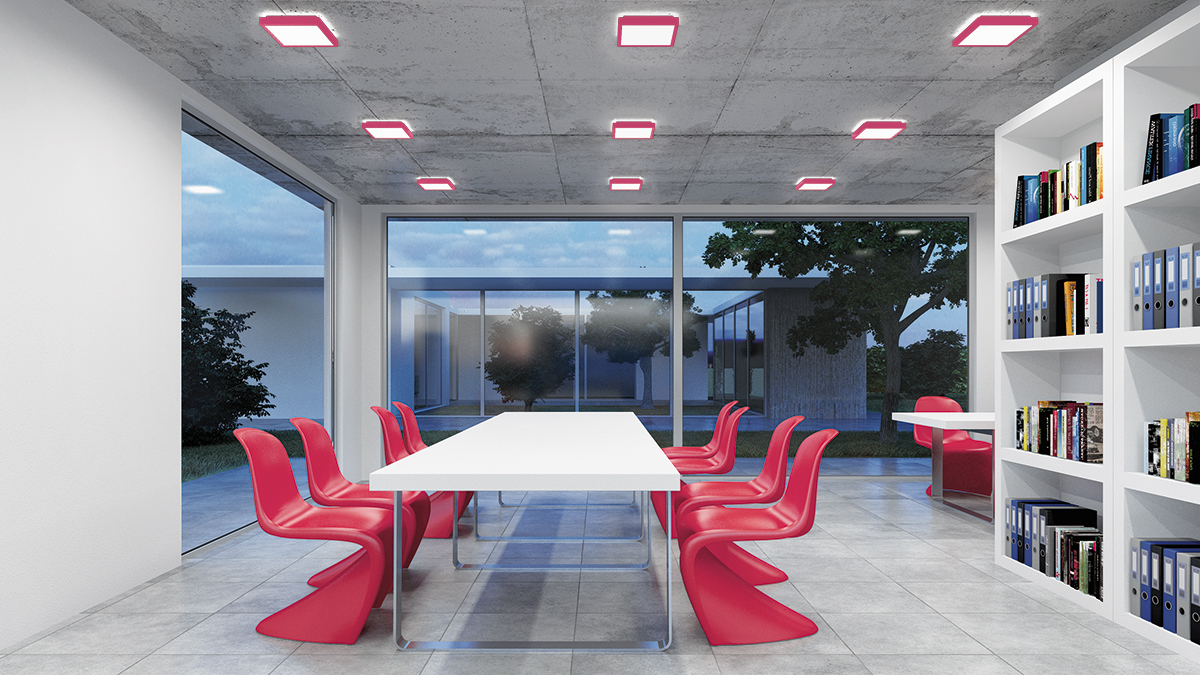 Die leichte Gestaltung unterstreicht das flache, schwebende Erscheinungsbild der Leuchte und sorgt für eine UNAUFFÄLLIGE RAUMINTEGRATION.
