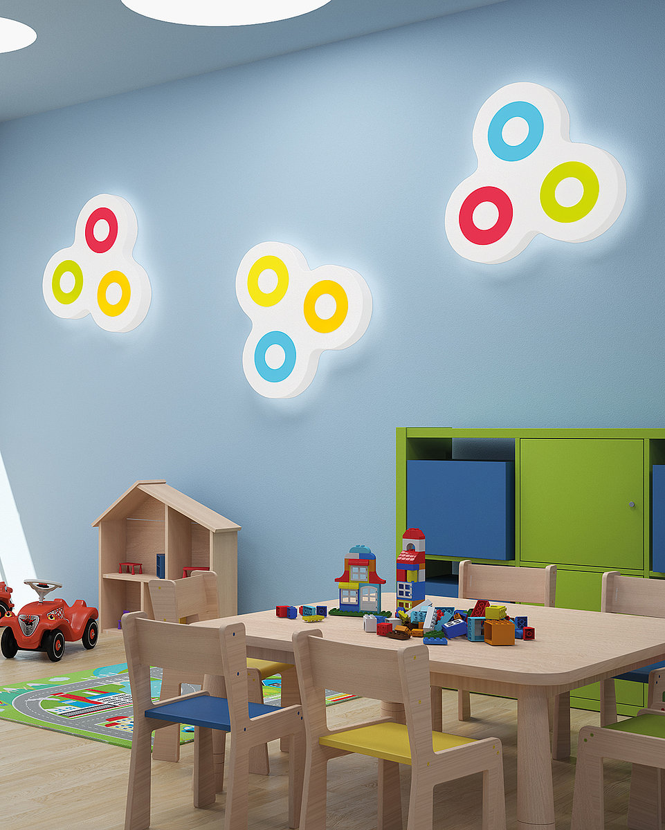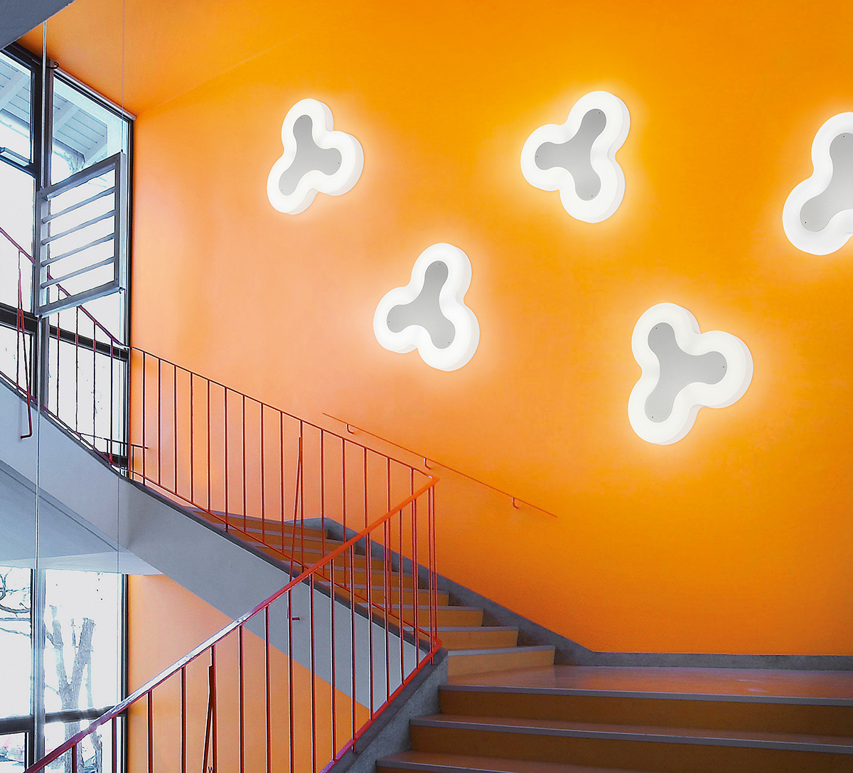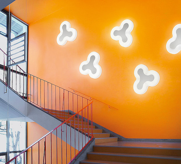Die verschiedenen organischen Formen der CLOUD Wand- und Deckenleuchten laden zur freien Gestaltung großer Flächen ein.