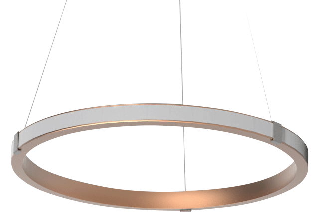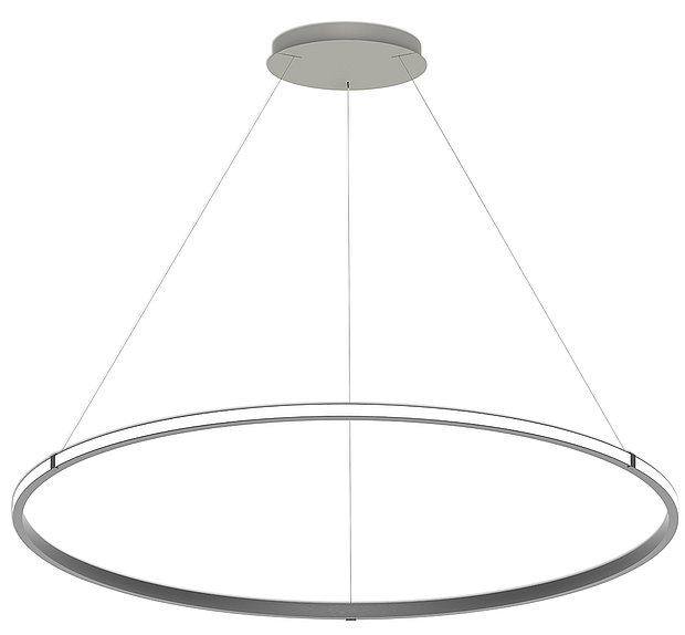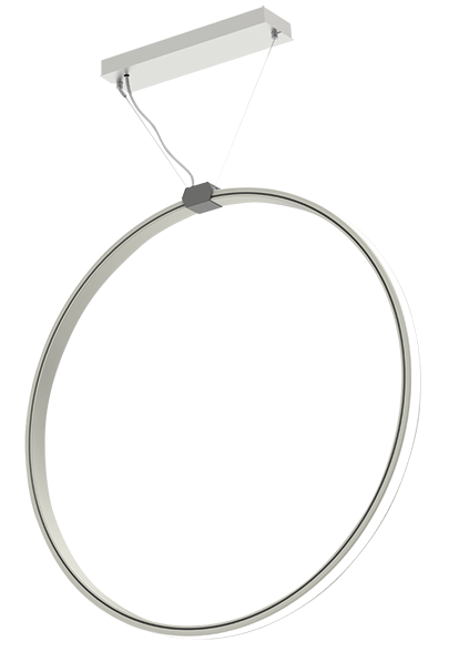 Mit einem nur 36 mm hohen Ring aus gepulvertem Aluminium und einer dünnen umlaufenden LED-Lichteinheit scheint das Licht im Raum zu schweben und wird umlaufend ohne sichtbare Unterbrechung nach außen abgegeben.