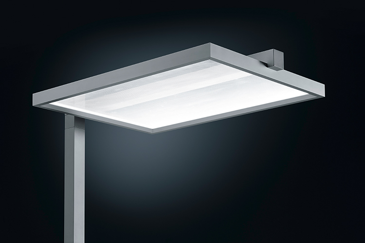 Die integrierte LIGHT CONTROL STRUCTURE (LCS) bricht das Licht an exakt vorher berechneten Stellen und lenkt es blendfrei in den Raum, dies ermöglicht die richtungsneutrale Leuchtenanordnung bei normgerechter Blendungsbegrenzung.