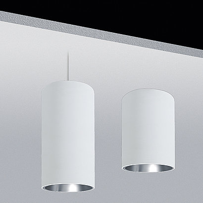 Die zylindrischen Anbau- oder Pendelleuchten eignen sich perfekt für die Montage bei Betondecken oder Deckenrestriktionen.