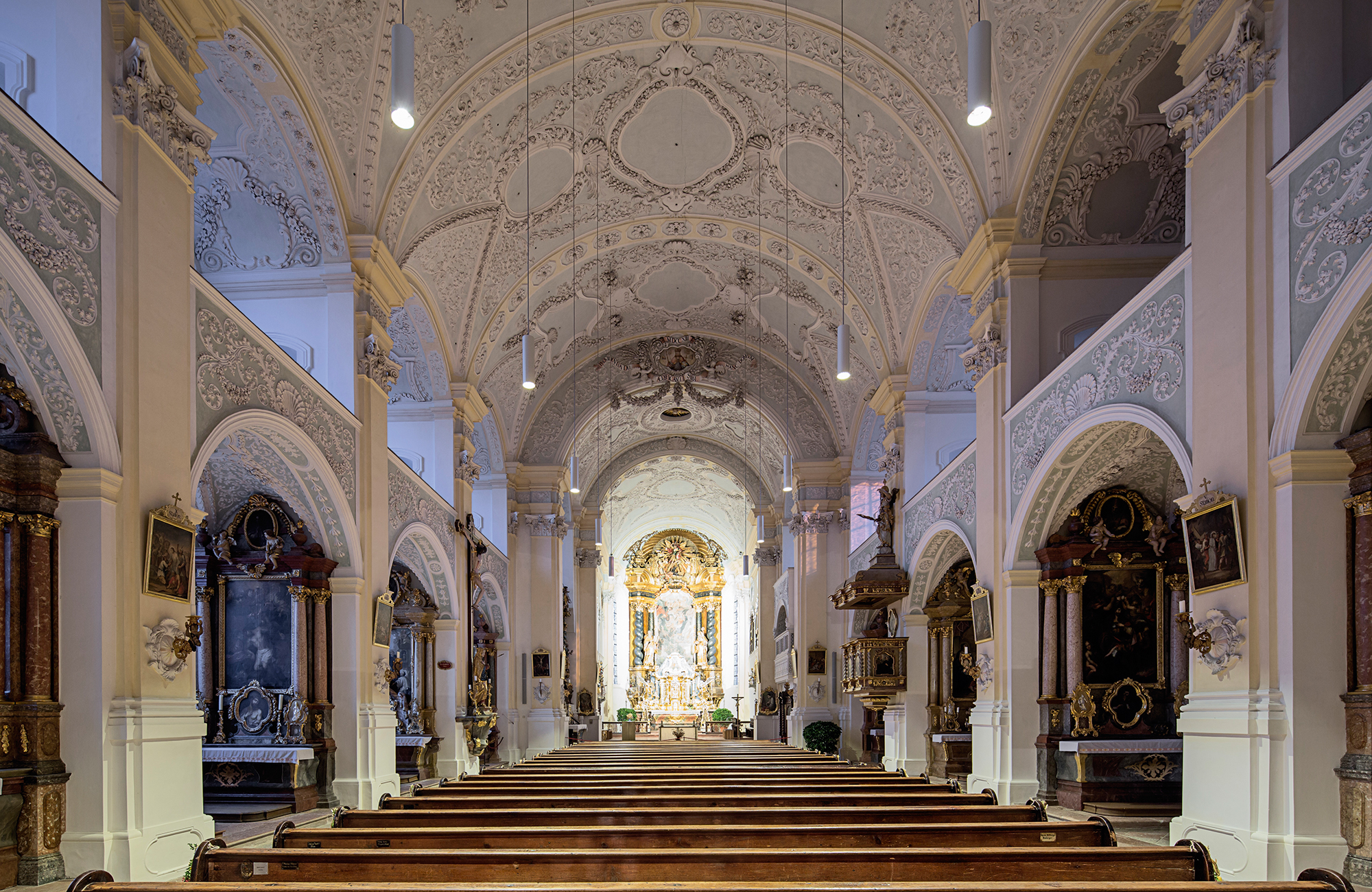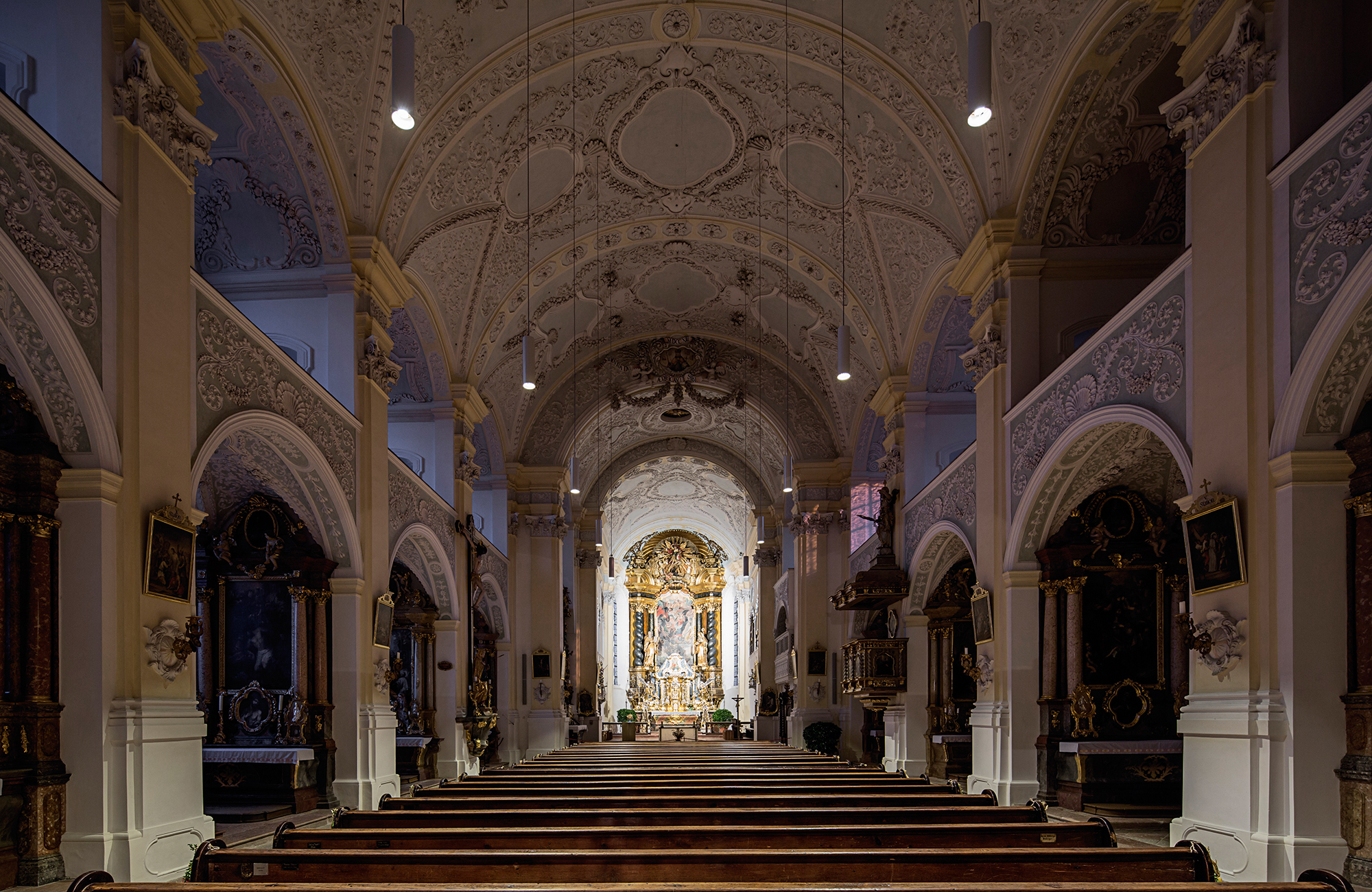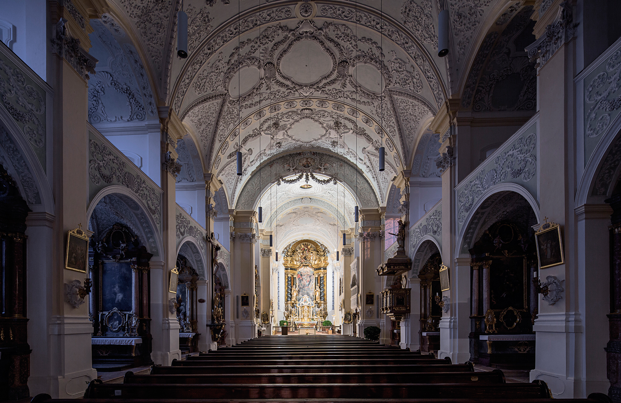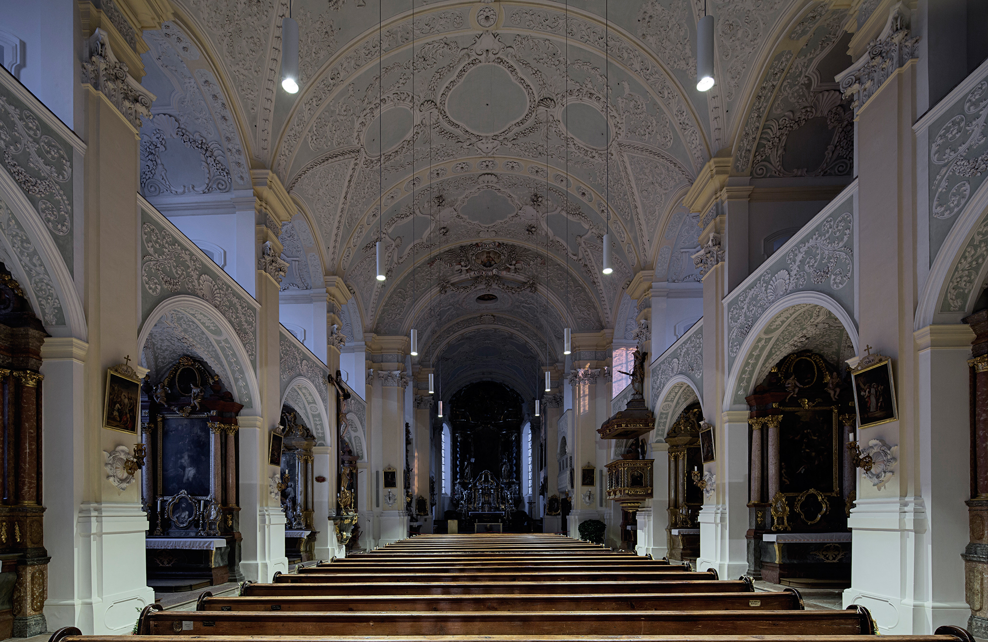 Auch kann durch die Kombination von Pendelleuchten und Downlights mit identischer Lichtqualität die optische Beleuchtungsebene bei unterschiedlichen Deckenhöhen beibehalten werden.