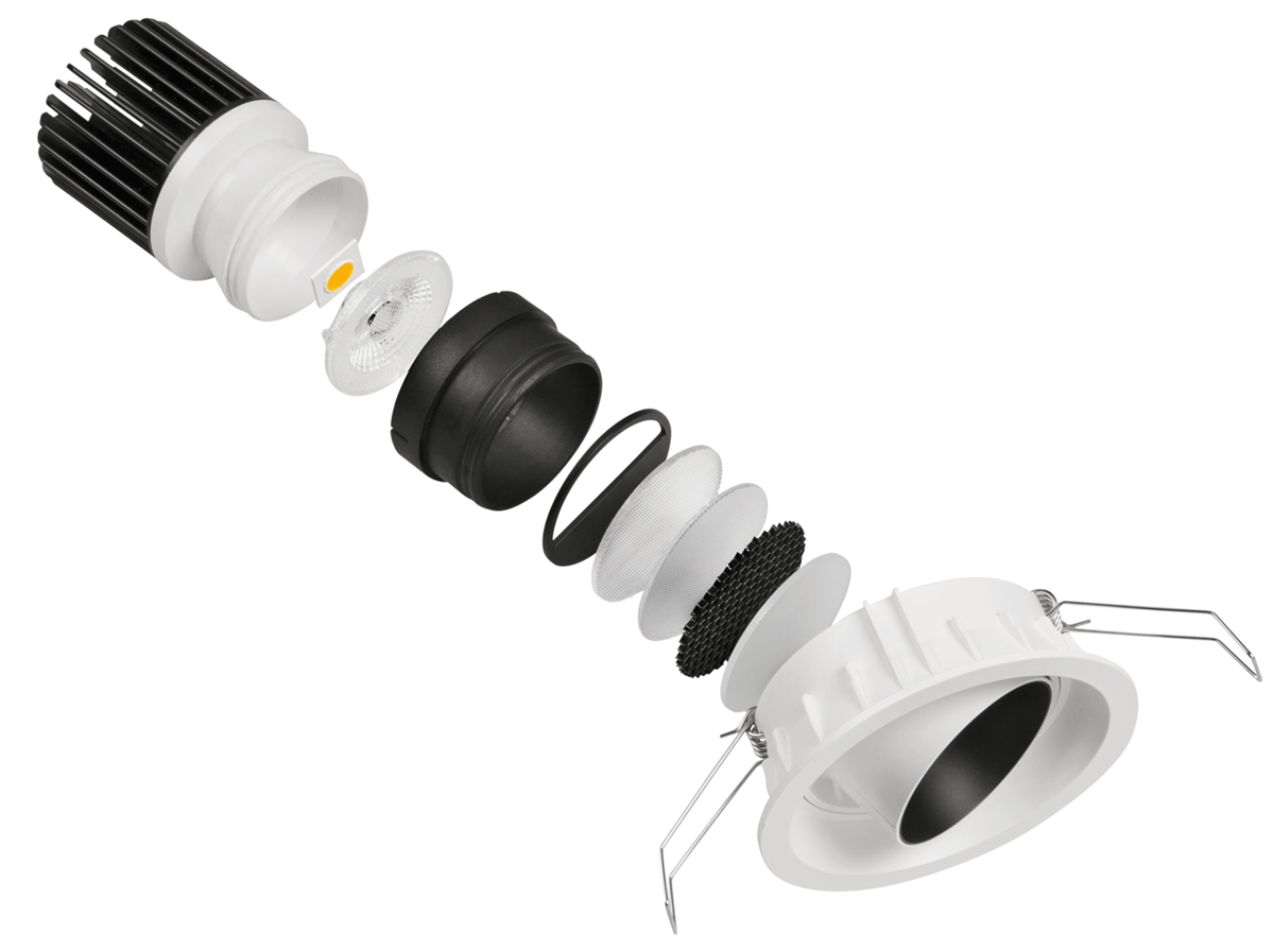 Von einzelnen Downlights - ob fix oder flexibel schwenkbar - über rund und quadratische Designs bis hin zu Doppelstahlern im Einbaugehäuse.