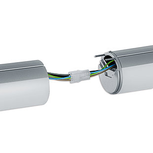 Die Leuchteneinheiten werden über ein einfaches Stecksystem miteinander verbunden, um eine Systembeleuchtung zu schaffen.