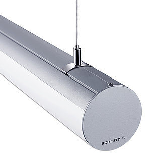 Die Aufhängung wird werkzeuglos mit Clips am Leuchtenkörper befestigt, diese können analog zu den Aufhängepunkten stufenlos verschoben werden.