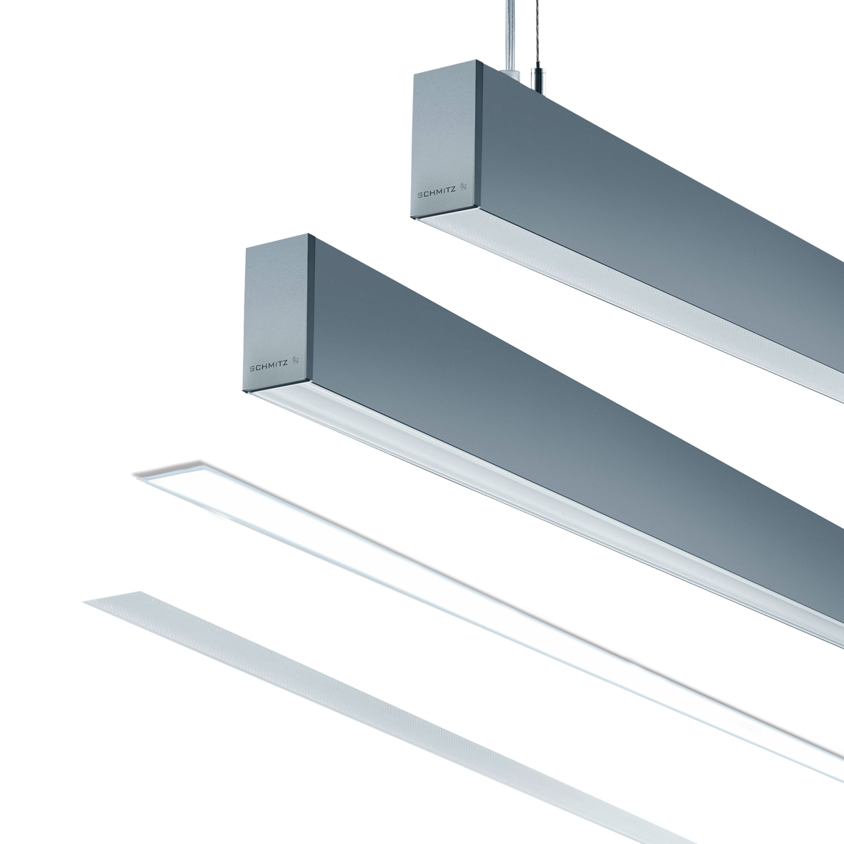 - Passgenaue LED-Leuchteneinheiten in unterschiedlichen Längen mit den Optiken PUBLIC, OFFICE oder WALLWASH