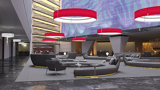 Mittels direkter und indirekter Lichtverteilung werden sowohl die Architektur als auch die Leuchte selbst HOMOGEN und EINDRUCKSVOLL inszeniert.