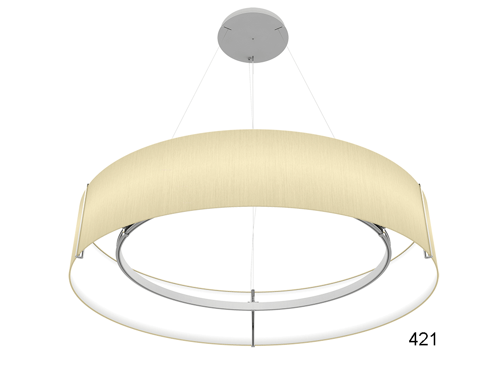 Den freien, schwebenden Charakter verdankt VOLUMA ihrer OFFENEN BAUWEISE. Mit DREIßIG SCHIRMFARBEN und VIER DURCHMESSERN im Standard sind VOLLE FLEXIBILITÄT und PERFEKTE INTEGRATION im Objekt gegeben.