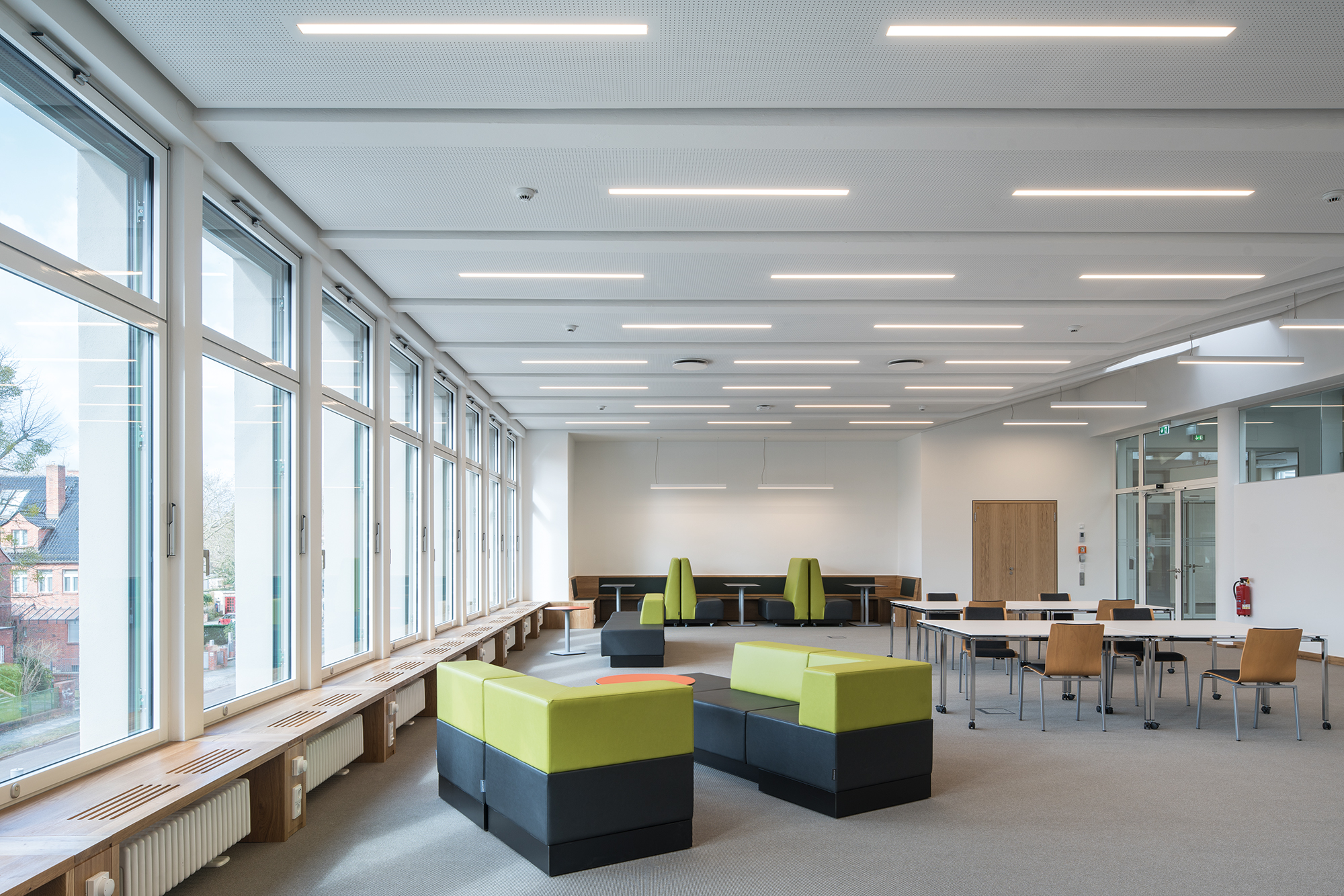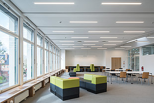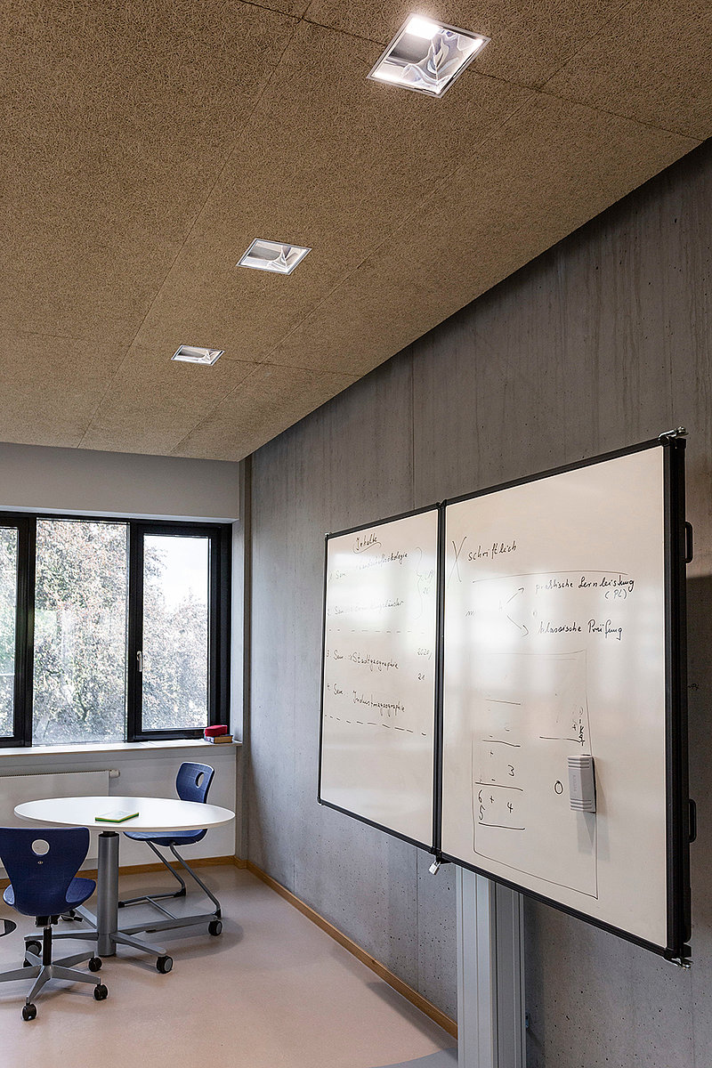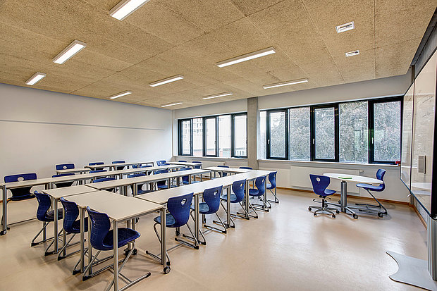 In den neuen Klassenräumen wird die Möblierung häufig in Reihen-, U-Form oder Tischgruppen umgestellt, dies stellt hohe Anforderungen an die blendfreie Sicht im Raum.