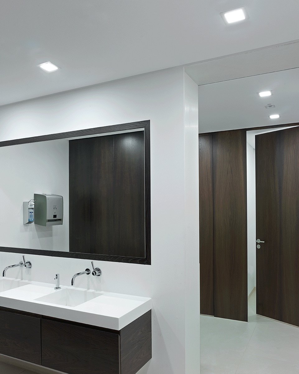 Die Tafelbeleuchtung erfolgt mit Downlights aus der Produktfamilie ALPHABET ZONO, die mit einem Abschirmwinkel α > 30° durchgängig eine perfekte Abschirmung gegen Blendung bieten und damit die höchste Güteklasse der EN12464-1 erfüllen.