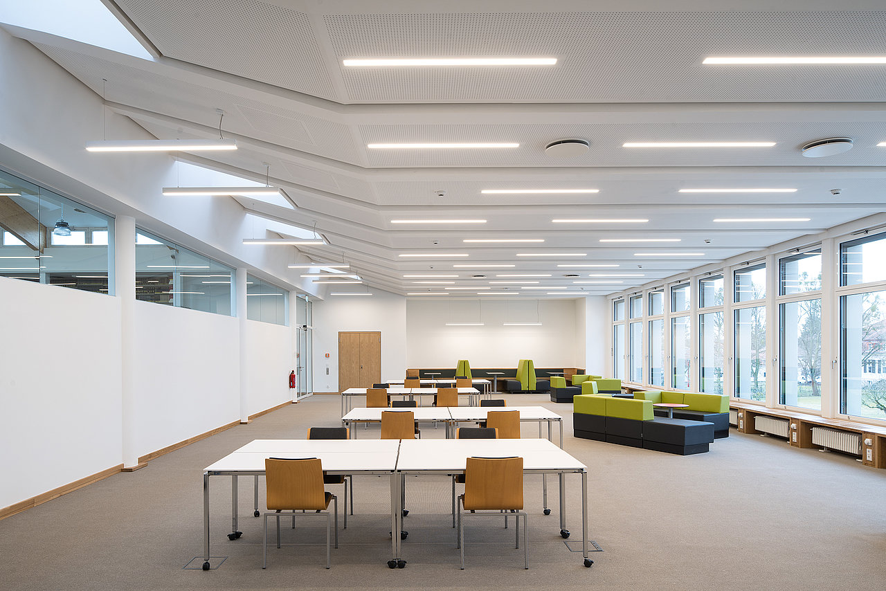 Aus der Bibliothek wurde ein moderner Raum der Kommunikation, Arbeit, Kreativität und Entspannung miteinander verbindet.